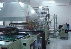 製袋機でプラスチック袋の基本的な形を作る工程です。さまざまな製袋機で、それぞれのプラスチック袋の形にしていきます。